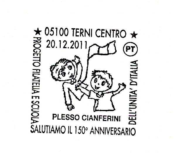 Cartolina ed annullo realizzata dal Plesso Cianferini di Terni: