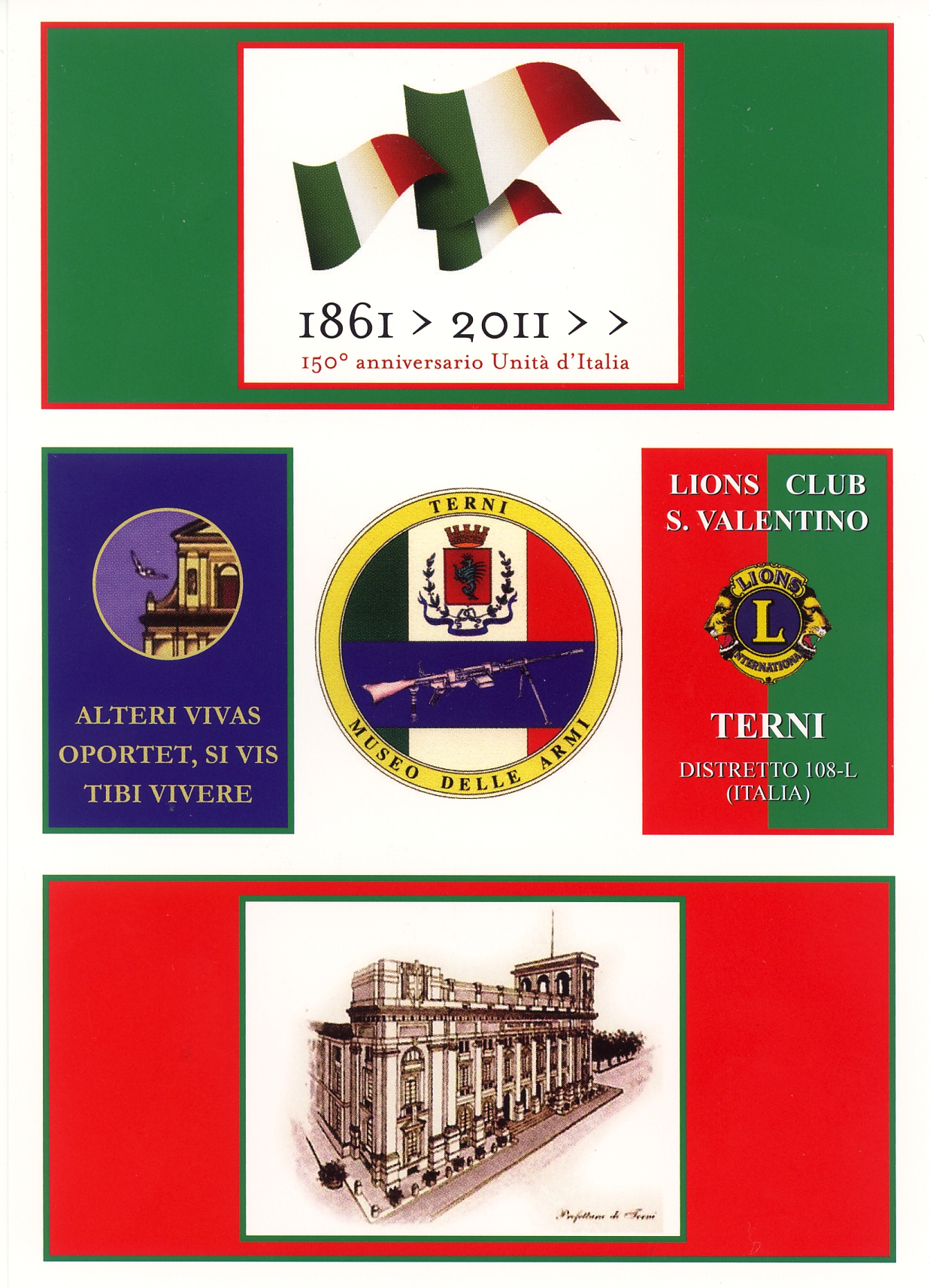 Cartolina ed annullo postale del Lions Club S.Valentino di Terni: