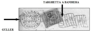 La targhetta è sempre accompagnata da un”guller”o”bollo a data”dove sono riportati:1°riga il giorno;2°riga il mese e l’anno;3° riga l’ora seguita da una”M”per mattina e da una “S” per sera,il guller è formato da un doppio cerchio.La targhetta puo’essere posizionata sia a destra che a sinistra del guller.Con il passare degli anni si ebbero delle modifiche che riguardarono la massa dataria all’interno del doppio cerchio a seconda del tipo di macchina bollatrice utilizzata.