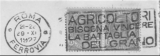 Si trattava di frasi di Mussolini che invitavano il popolo alla dedizione per la Patria, tipo: “Sottoscrivete al Prestito del Littorio”; “Agricoltori bisogna vincere la Battaglia del Grano”; “Visitare la Tripolitania è un dovere nazionale”; “Rendere sempre piu’prospera l’agricoltura”; “Visitate l’Italia”, ecc…..di seguito alcuni esempi: