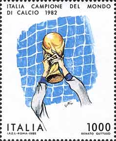 Renato GUTTUSO (1911 – 1987) celebra nel 1982 la vittoria italiana nei campionati mondiali di calcio.