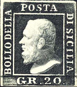 Nel 1859 Ferdinando II di Borbone, Re di Napoli,  si rivolse per i quattordici valori destinati alla Sicilia al massimo esponente degli incisori dell’ottocento Tommaso Aloisio JUVARA ( 1809 – 1875) nipote del celebre architetto,Filippo Juvarra.