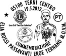 Su richiesta dell’Associazione “Amici Museo delle Armi del Comune di Terni”, Sabato 19 Maggio 2012, presso il Polo di mantenimento Armi leggere di Viale B.Brin 149, dalle ore 10 alle ore 14, Poste Italiane provvederà ad obliterare materiale filatelico con l’annullo sottostante