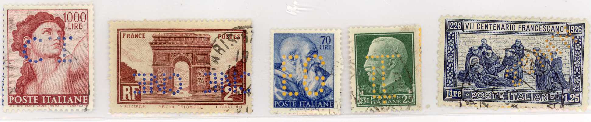 Per evitare che i propri dipendenti usassero i francobolli loro affidati per scrivere lettere d’amore ( o altro ) ai loro partners privati fu concesso dalle Amministrazioni di perforare i francobolli con sigle o acronimi della Ditta o Ente di appartenenza. E, a testimonianza che tutto il mondo è paese, tale uso fu adottato praticamente ovunque fin dagli inizi del secolo scorso ed è durato, in Italia, fino agli anni ’50/60.Anche tra i perfin vi sono quelli comuni e quelli più rari; tutti sono ricercati ed apprezzati da filatelici specialisti.
