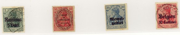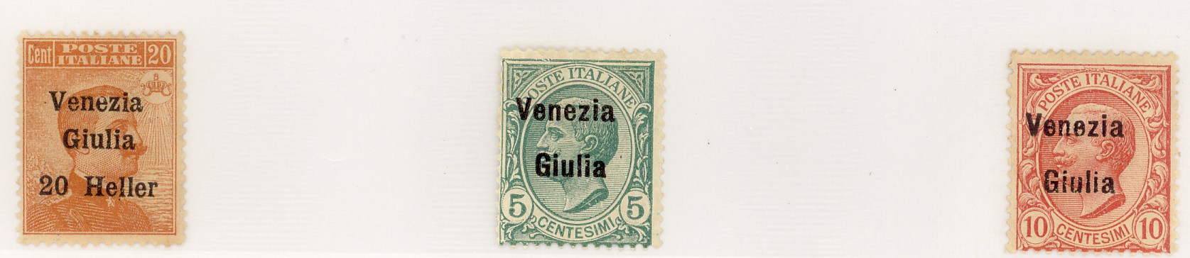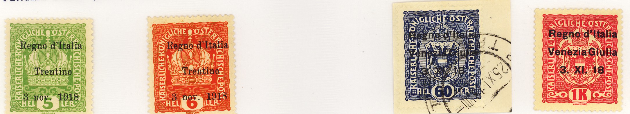 Per tutta risposta, quando i soldati italiani, al termine della guerra vinta, entrano a Trento ed a Trieste il 3 Novembre 1918, vengono requisiti tutti i francobolli d’Austria trovati (non molti) che sono di nuovo in circolazione l’11 Novembre con la sovrastampa Regno d’Italia – Trentino e Venezia Giulia per Trieste.Ed appena possibile, ai primi di Dicembre, vengono distribuiti francobolli del Regno con le sovrastampe “Venezia Tridentina” e ” Venezia Giulia “.Non si contano le emissioni di francobolli sovrastampati per i territori occupati da truppe tedesche oppure per i territori tedeschi occupati dagli eserciti alleati durante e dopo la 1^ guerra mondiale, ma sempre ispirati al principio: “sappiate tutti che quì comando io”.