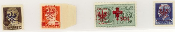 Successivamente vengono usati francobolli nazionali fino a quando, dopo l’8 Settembre 1943, vengono sovrastampati con aquila germanica e ” Provinz Laibach ” dai tedeschi che ci cacciano senza riguardo dal “territorio nazionale”, sebbene alleati della “Repubblica Sociale Italiana”.