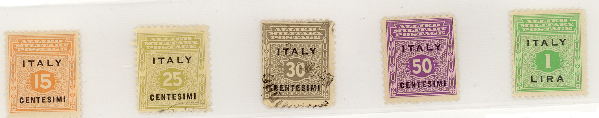 Sbarcati sul continente, riconoscendo la sovranità di Vittorio Emanuele III, i francobolli ” ITALY ” furono abbandonati. Usati occasionalmente nelle province meridionali da qualche militare che se li ritrovava in tasca e regolarmente viaggiati sono delle rarità, usati oltre Montecassino, fino a Roma ed in Umbria sono rarissimi.