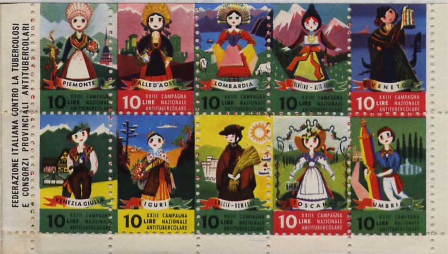 Alcune di queste immagini sono state prese dal Catalogo – Guida  ” Il Francobollo Antitubercolare dal 1931 al 2000″ , di Agostino Merlin, ottimo e, credo, unico lavoro in materia.
