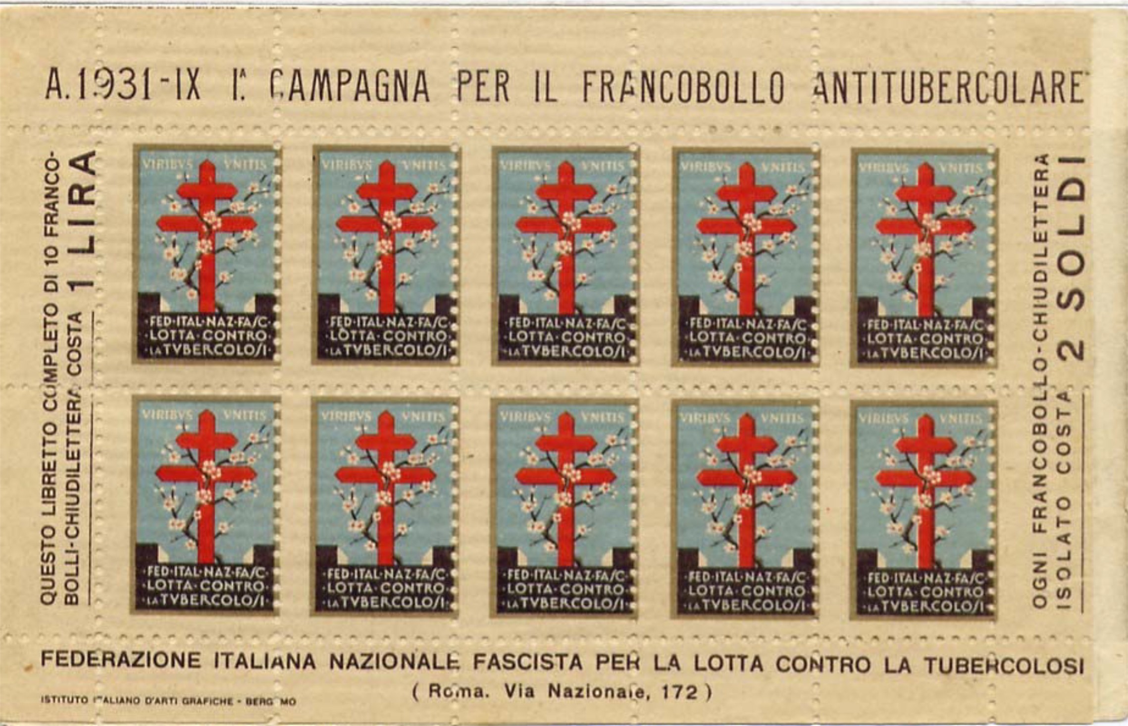 A proposito dei libretti contro la Tubercolosi si può ben dire che sono veramente, almeno a mio modesto parere, dei piccoli gioielli ( peccato che ne possiedo soltanto 6 ).Nel 1931 la Federazione italiana fascista contro la Tubercolosi dette il via alla prima grande ” Campagna per il francobollo Antitubercolare” per raccogliere fondi da destinare ai malati poveri e per le ricerche tisiologiche che si protrasse fino al 1940.