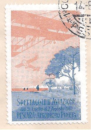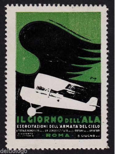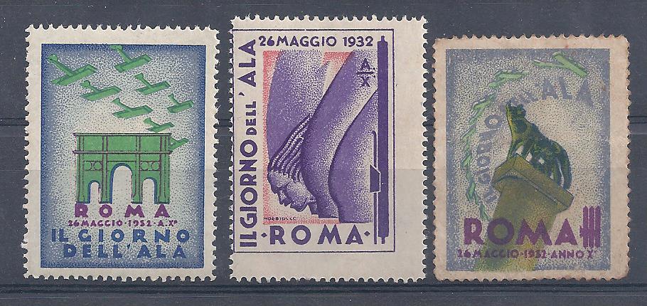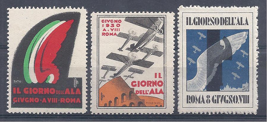 Per celebrare questo evento furono realizzati 4 erinnofili,stampa litografica mm 30×40 aventi come soggetto:1)ala stilizzata tricolore(Tato)….2)aerei che sorvolano il Colosseo(Morbiducci)…3)ala su fascio littorio ed aerei(Melis)….4)aereo sullo sfondo grande ala nera(Magagnoli). Immagine