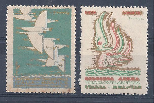 Per l’occasione furono realizzati due erinnofili,stampati in litografia mm 29×40 riproducenti:1)ali tese sopra l’oceano2)uccelli stilizzati sull’oceano.Autore di entrambi G.Padua.