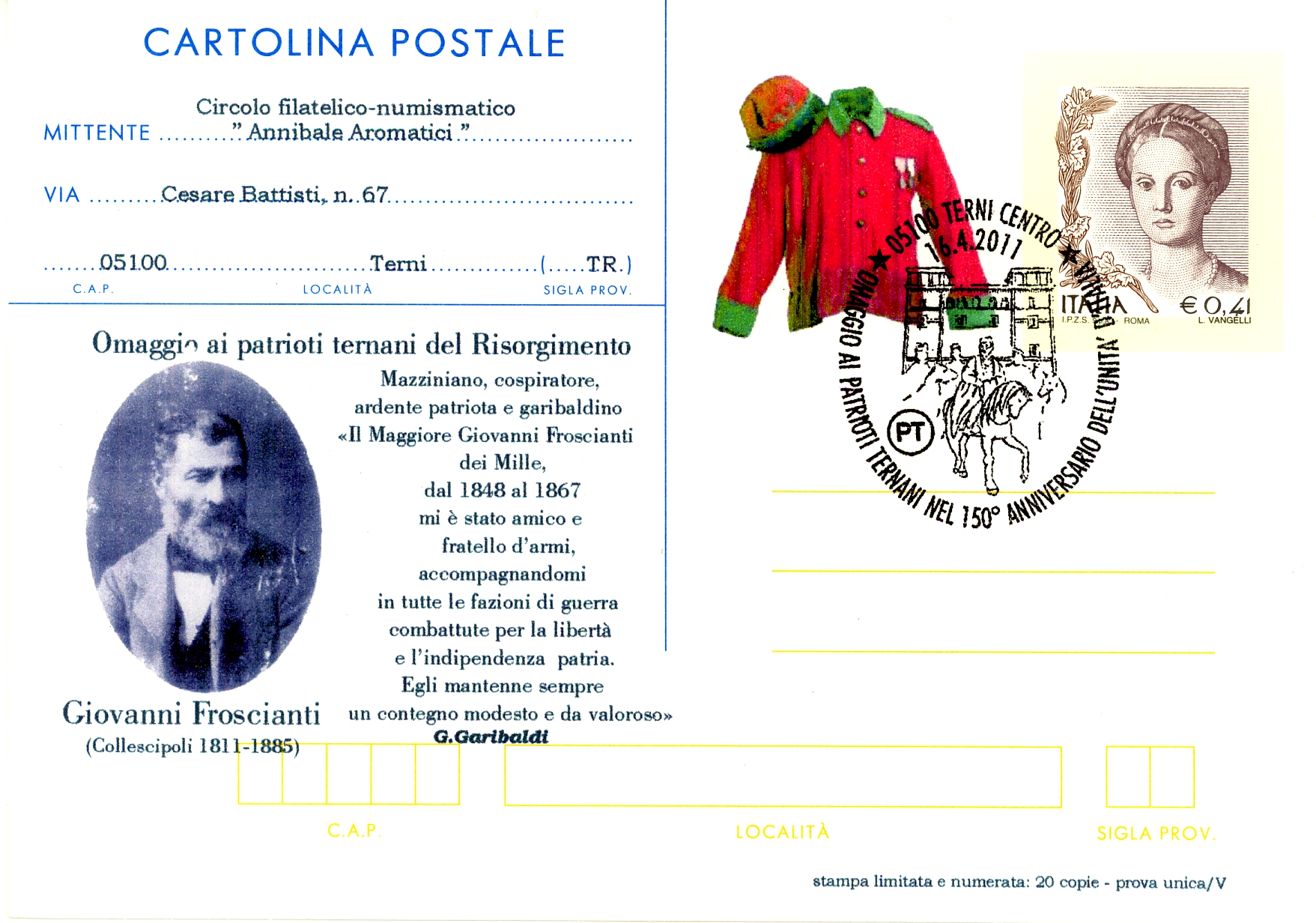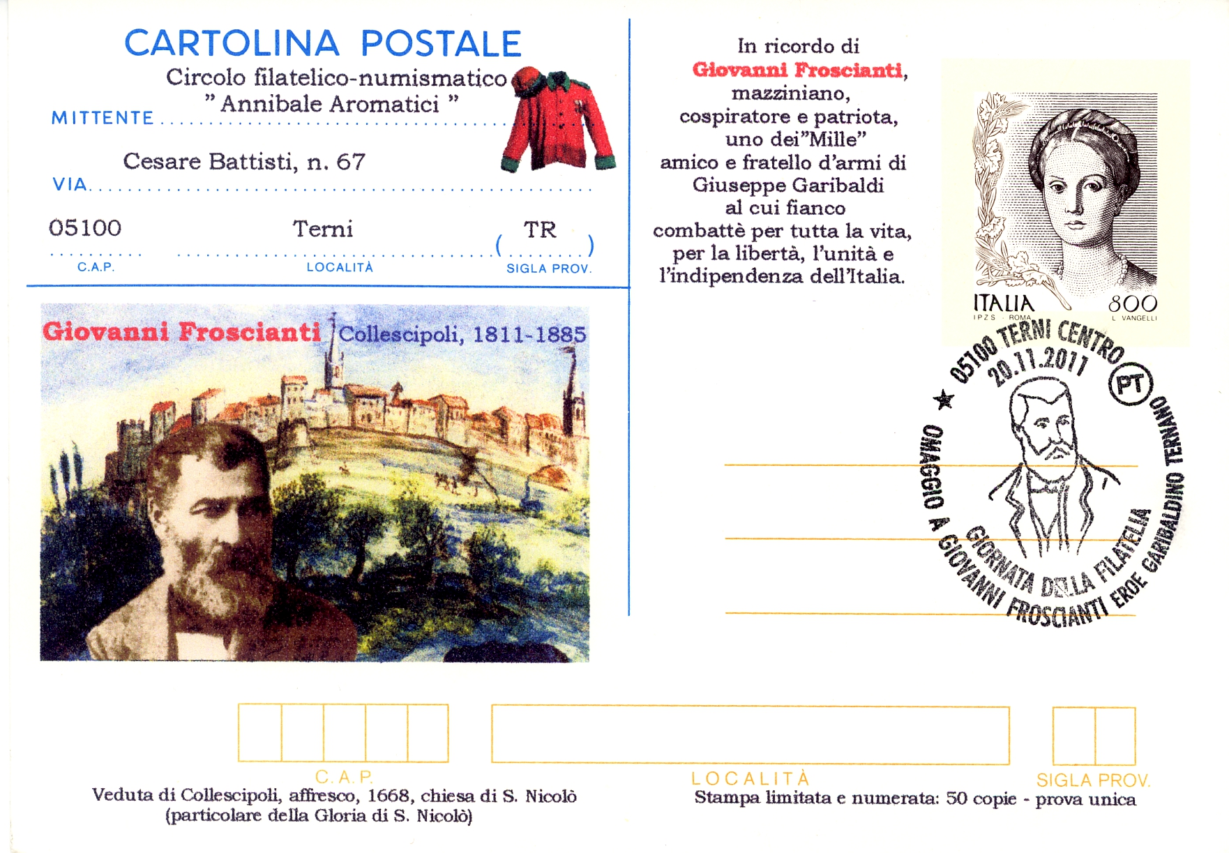 P.S. Alcune notizie sono tratte dal libro di Andrea Giardi. ” Giovanni Froscianti, amico e fratello d’armi di Garibaldi” – ed. Thyrus