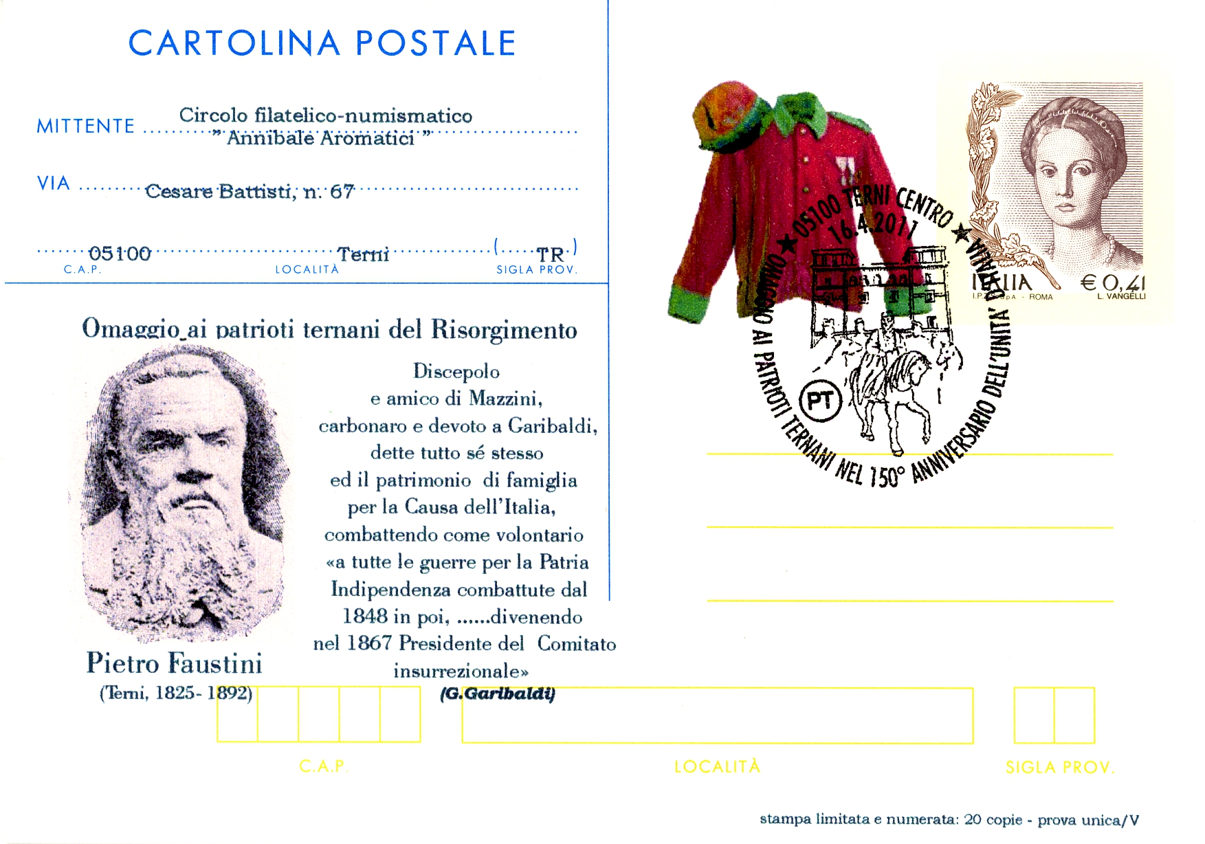 Annullo postale commemorativo di Edoardo Barberini realizzato dal nostro Circolo in occasione della Mostra – convegno ” Garibaldi e i Garibaldini ternani ” del 2002.