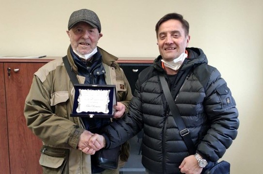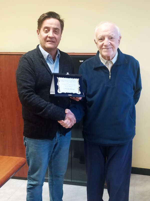 In occasione della ricorrenza del 50° anno del Circolo Filatelico-Numismatico il Presidente Danilo Corpetti a nome degli associati, ha premiato con una targa ricordo i soci fondatori ancora presenti, Nicola Socci e Romano Felici.